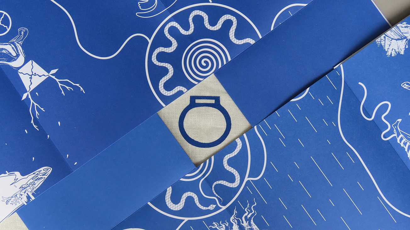 Este libro objeto, al ser desplegado en su totalidad, funciona en sí mismo como una obra plástica, pues ambos segmentos del libro pueden materialmente entretejerce para que el reverso de los pliegos creen una pieza gráfica unitaria, que como un atlas visual en mandala tiende puentes entre los símbolos de la historia humana en relación a las aguas ancestrales.