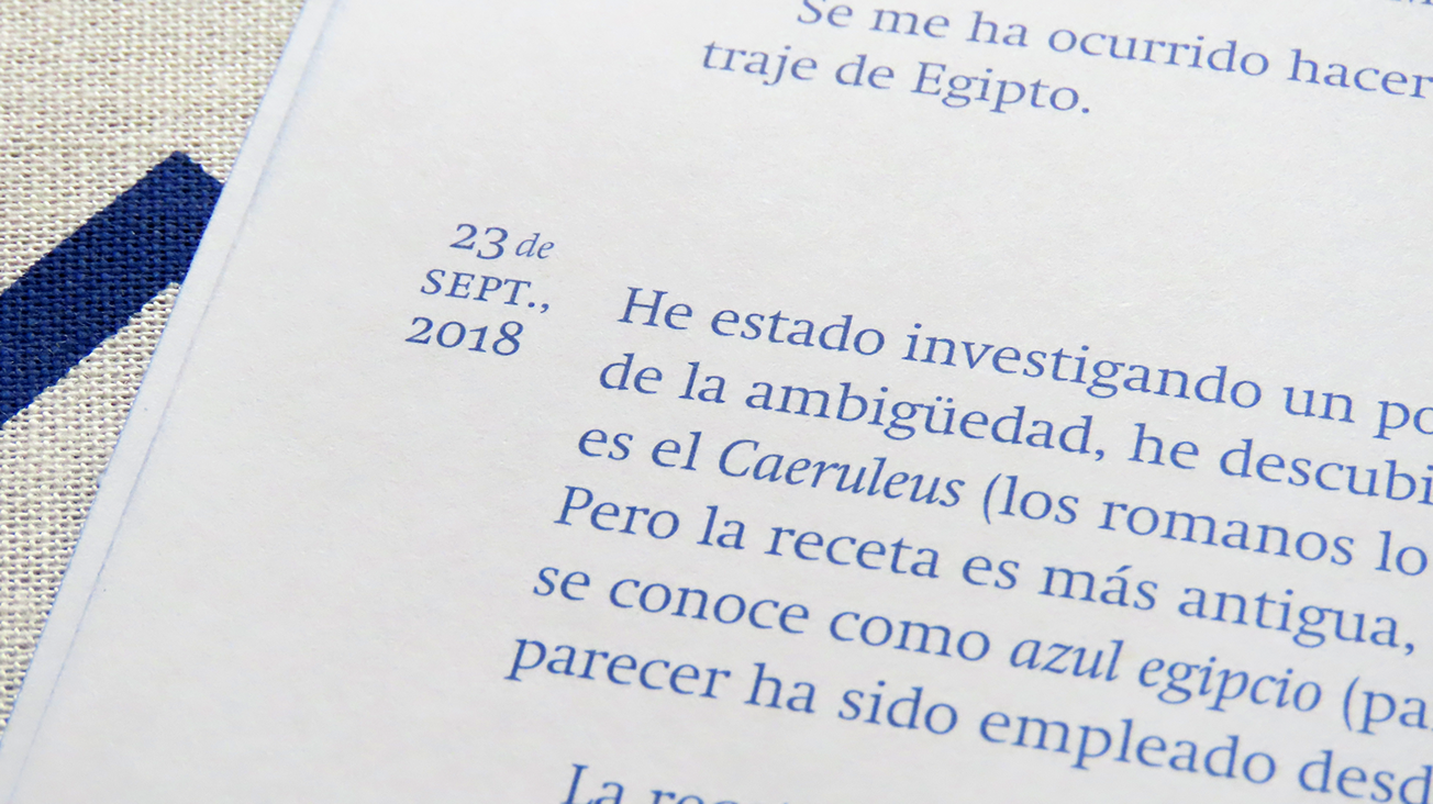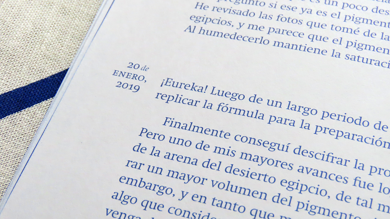 Este libro cuenta con una edición especial con aplicaciones del pigmento azul egipcio en la cubierta.